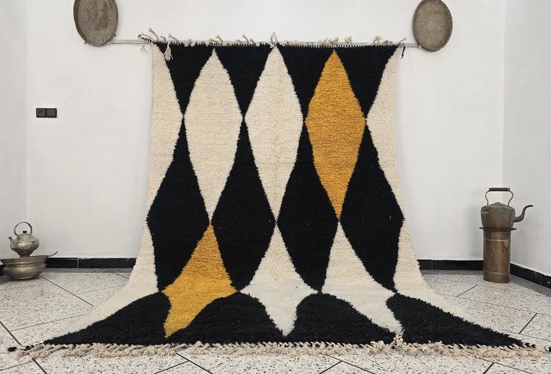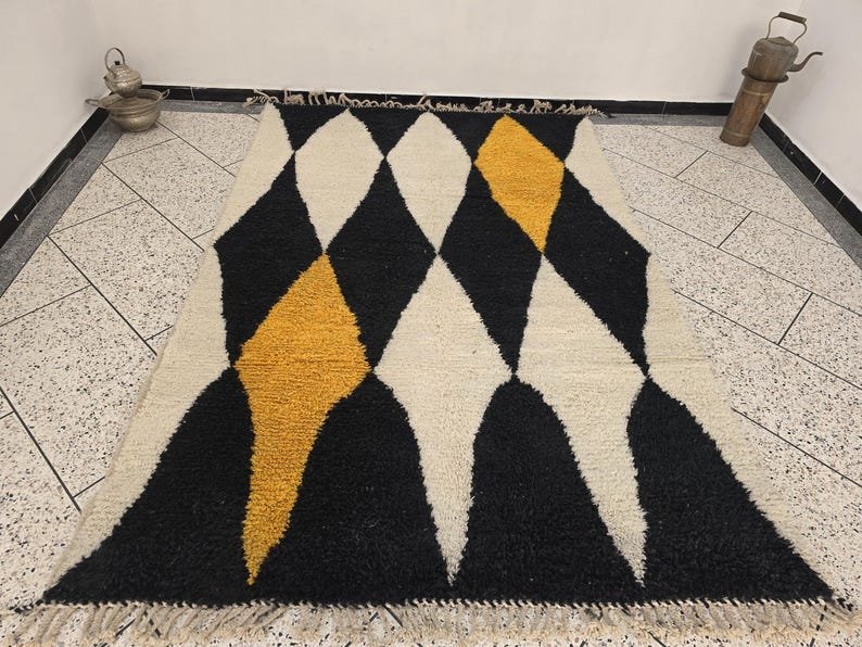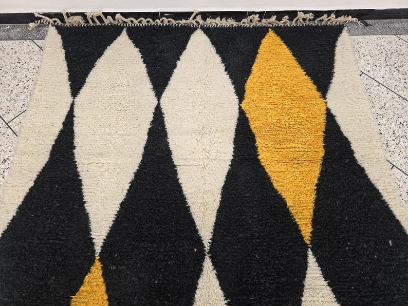Be the first to review “ARTISTIC BENIOURAIN RUG, Moroccan Handmade Rug, Turmeric Yellow And White And Black Rug”