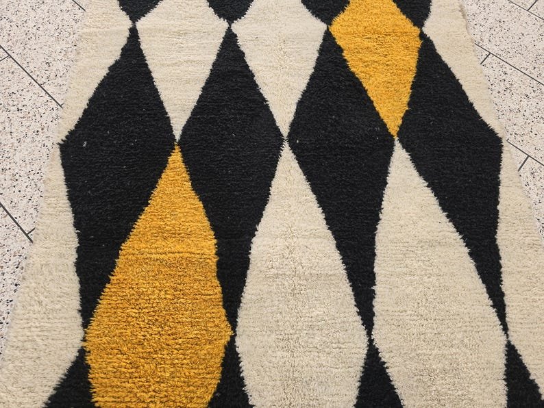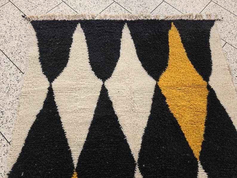 ARTISTIC BENIOURAIN RUG, Moroccan Handmade Rug, Turmeric Yellow And White And Black Rug