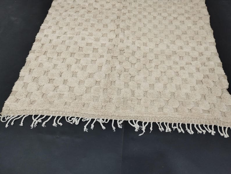 ARTISTIC BENIOURAIN RUG, Moroccan Handmade Rug, White Rug, Abstract White Rug, Handmade Sheep Wool Carpet, Berber Rug.