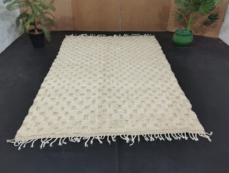 Add a touch of Moroccan charm to your living room, bedroom, kitchen, or children’s room with this handmade Moroccan rug, featuring a simple and natural design. Crafted from 100% natural wool, this customizable rug offers a natural look that seamlessly complements your existing furniture. Its clean and timeless design will fit perfectly into any modern or boho-inspired space.