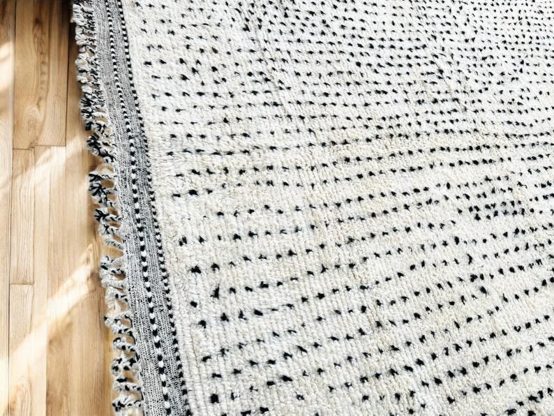 Classic Beni Ourain Moroccan Rug – Handmade Wool Area Rug – Ivory Berber Rug with Black Dots
