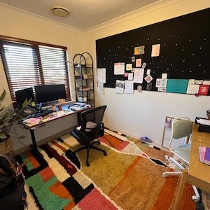 An authentic handmade Moroccan wool rug, designed to transform your space with color, culture, and artistic energy.