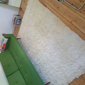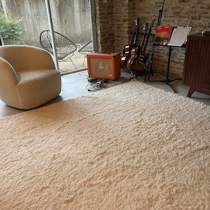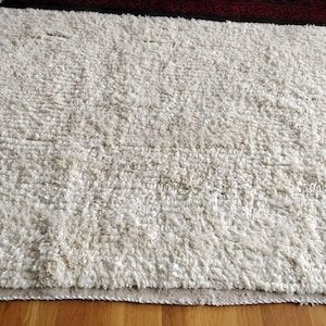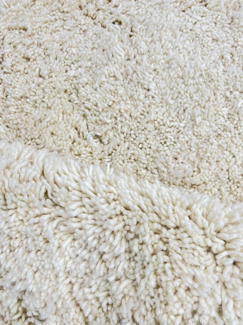 Made from 100% premium natural sheep wool, this Beni Ourain rug features a thick, plush pile that is exceptionally soft underfoot while providing natural insulation and warmth. Its solid ivory / cream tone highlights the beauty of the wool itself, creating a calm, organic foundation that enhances both modern and classic interiors.