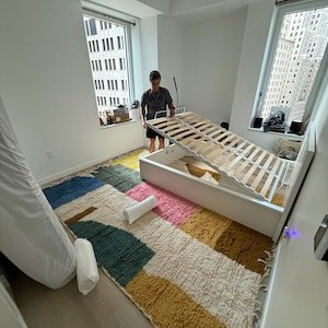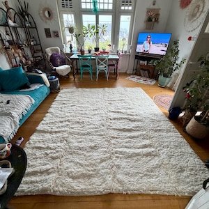 Perfect as a living room rug, bedroom rug, or large area rug, this custom Beni Ourain blends seamlessly into a wide range of interior styles, including modern, minimalist, Scandinavian, bohemian, wabi-sabi, and contemporary spaces. Interior designers and homeowners alike value Beni Ourain rugs for their versatility, durability, and timeless aesthetic.