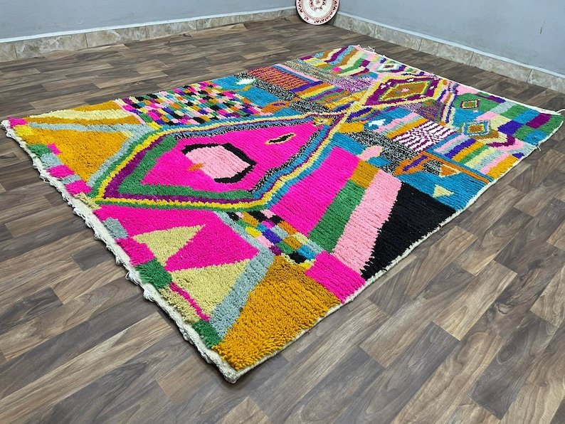 Transform your space with a one-of-a-kind handmade Moroccan Berber rug, meticulously crafted by skilled artisans using traditional weaving techniques passed down through generations. Each rug is made from 100% natural wool, providing a soft, durable, and eco-friendly addition to your home.