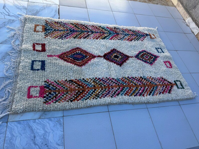 Transform your space with this colorful Moroccan rug, where traditional craftsmanship meets modern design.