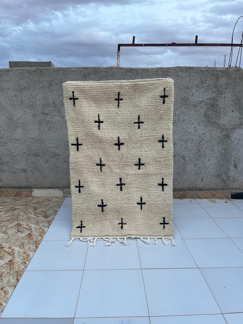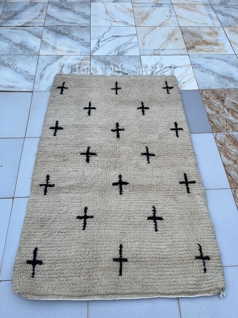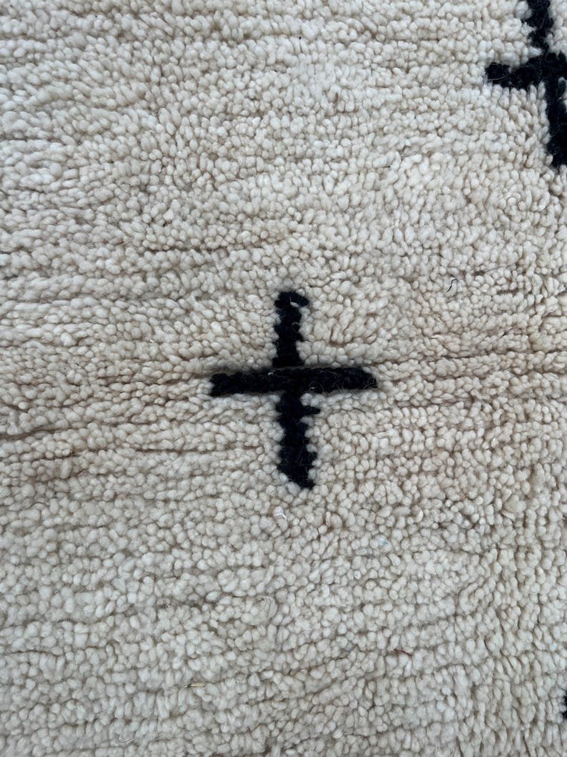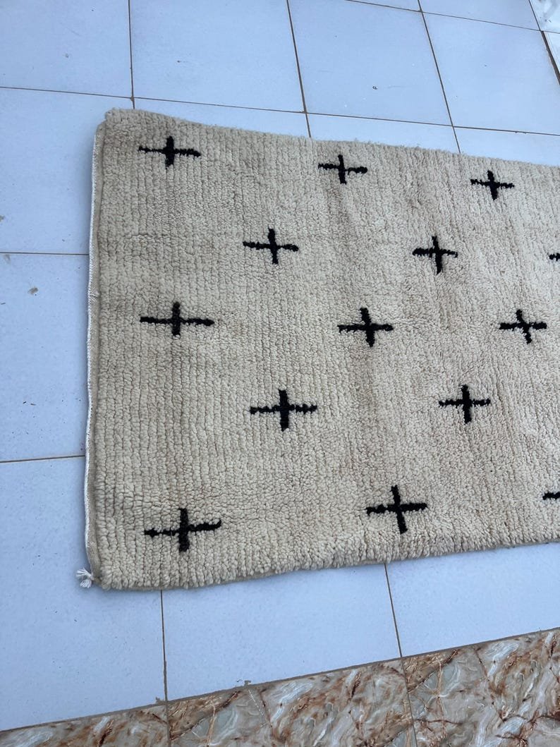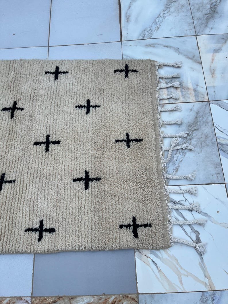 Discover the elegance of traditional Moroccan artistry with this custom handmade Beni Ourain–style rug. Thoughtfully crafted from high-quality, sustainable wool, it features the iconic black cross motifs on a soft cream background, creating a timeless design that complements modern, bohemian, and minimalist interiors alike.