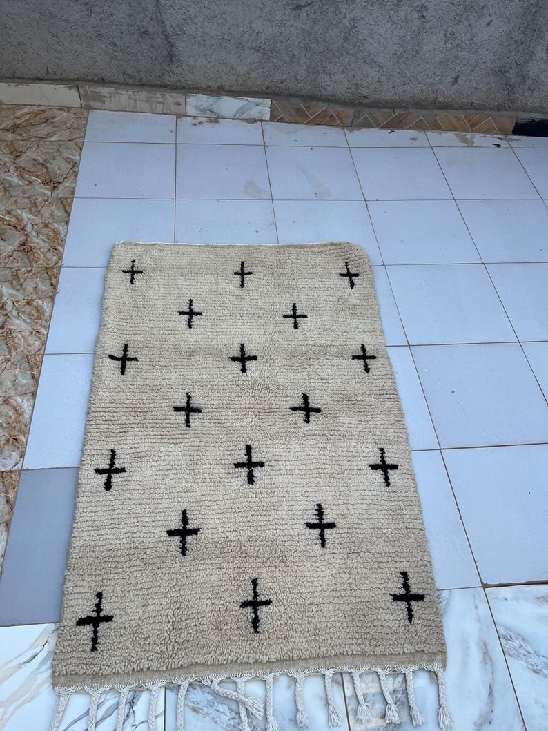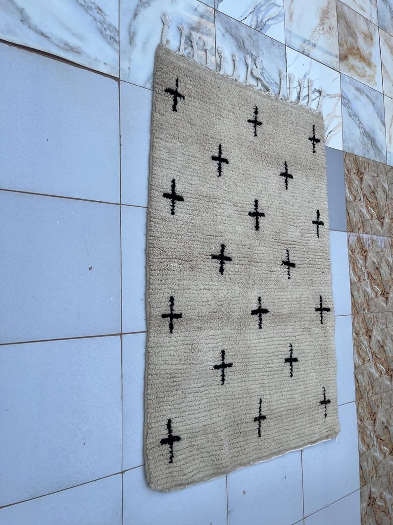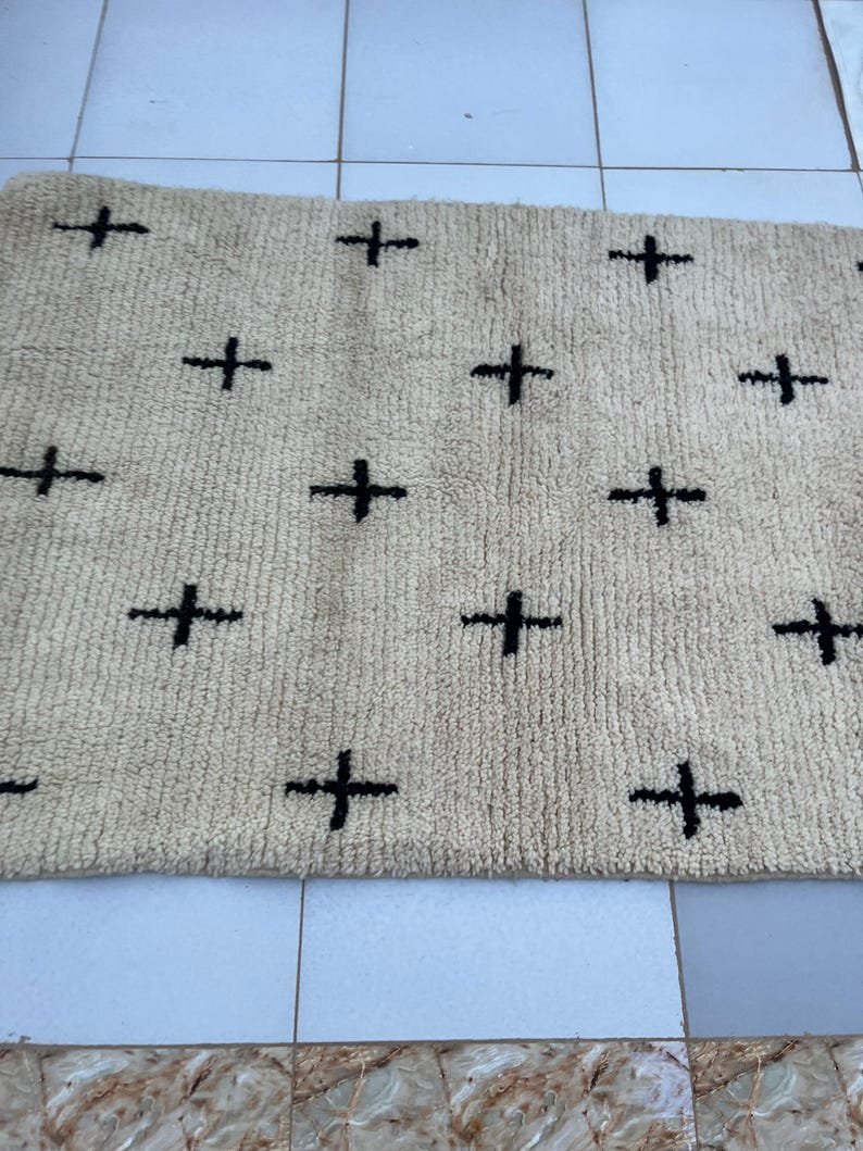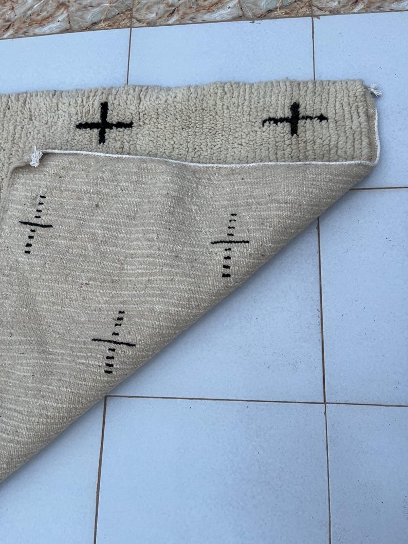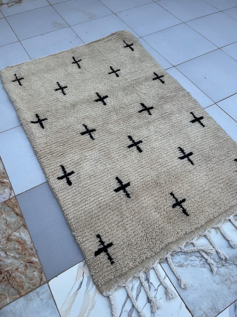 Discover the elegance of traditional Moroccan artistry with this custom handmade Beni Ourain–style rug. Thoughtfully crafted from high-quality, sustainable wool, it features the iconic black cross motifs on a soft cream background, creating a timeless design that complements modern, bohemian, and minimalist interiors alike.