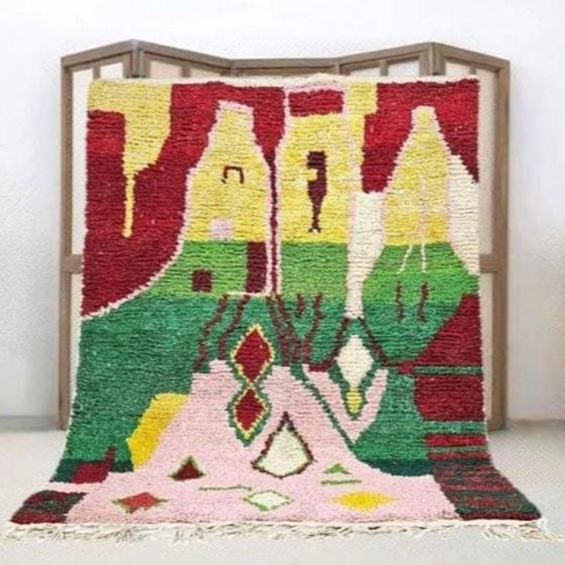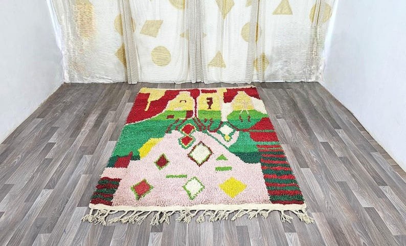 Handmade in Morocco: Each rug is skillfully woven by artisans in the Atlas Mountains.