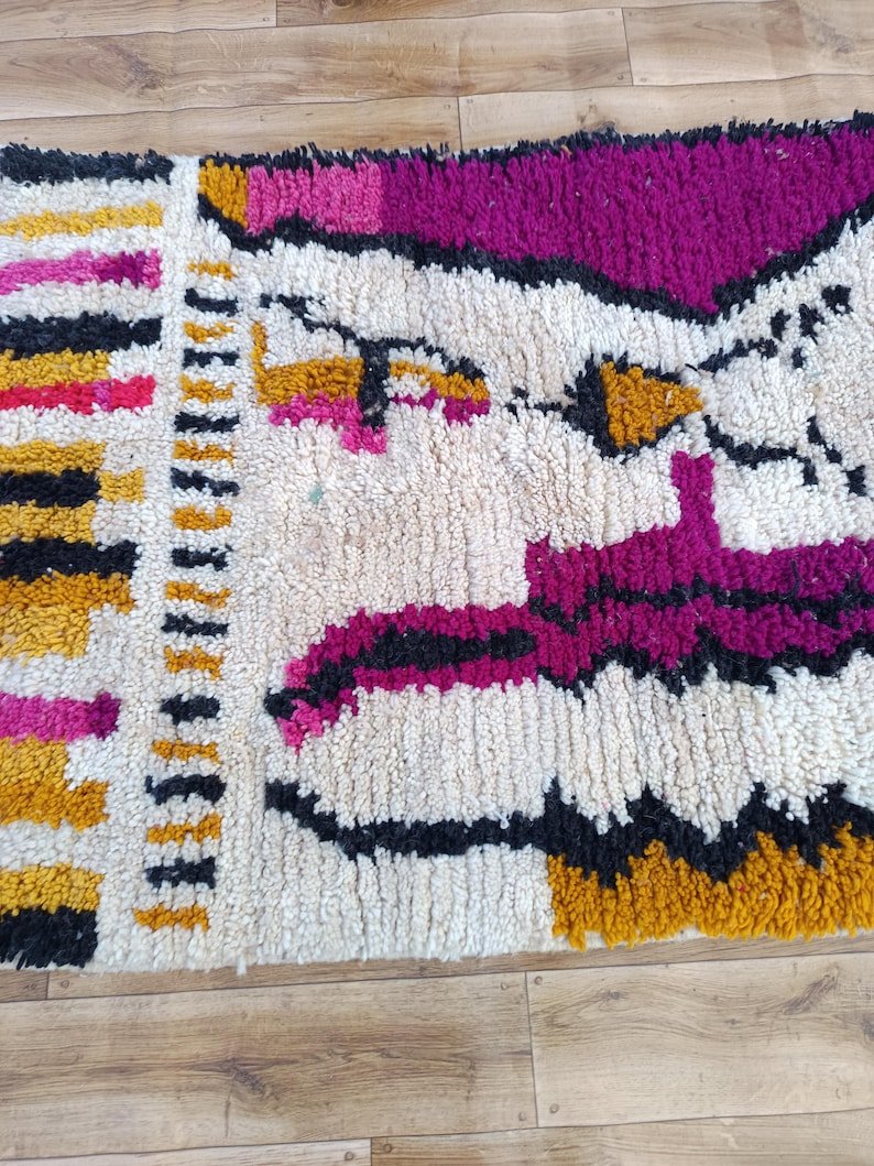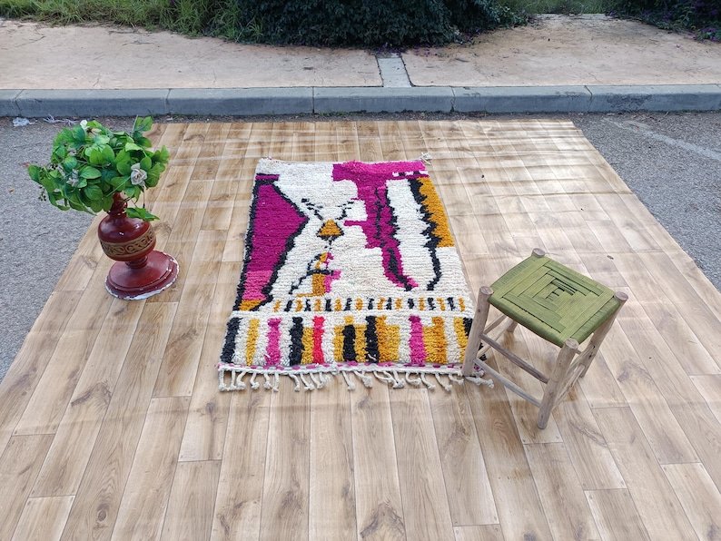 1. Beni Ourain Rugs: Traditionally handmade by Berber tribes in the Atlas Mountains, these rugs are known for their thick, soft pile and geometric patterns.