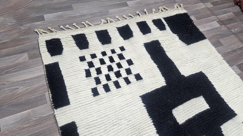 Known for their timeless beauty, Beni Ourain rugs feature clean, minimalist patterns that complement a wide range of décor styles—Bohemian, Modern, Scandinavian, Minimalist, or Traditional. The soft wool texture adds warmth and comfort, making it a perfect statement piece for living rooms, bedrooms, or creative spaces.
