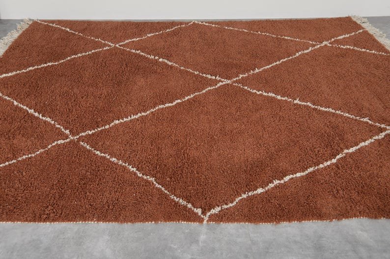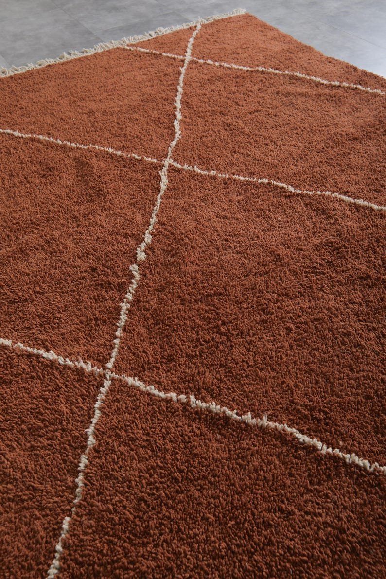 Be the first to review “Handmade Beni Ourain Moroccan Rug – Rust Terracotta Wool Area Rug with Ivory Diamond Pattern”