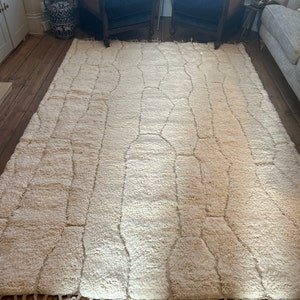 Handmade Moroccan Berber Rug – Ivory Minimalist Wool Area Rug with Organic Line Pattern
