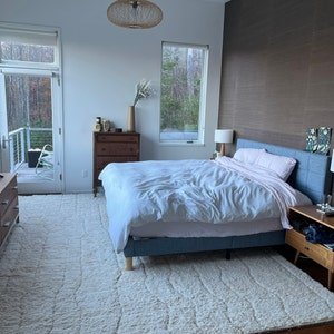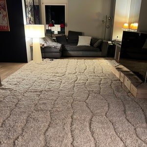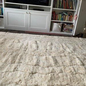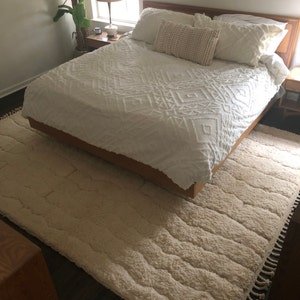 Handwoven by Moroccan artisans using 100% natural sheep wool, this rug offers a plush, comfortable pile that feels luxurious underfoot while remaining durable for everyday living. The neutral ivory tone reflects light beautifully and helps make rooms feel larger and brighter.