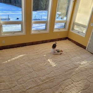 Perfect for living rooms, bedrooms, and cozy sitting areas, this rug blends effortlessly with both neutral and warm décor palettes. Each rug is fully handmade, so slight variations in texture and line placement are part of its authentic charm.
