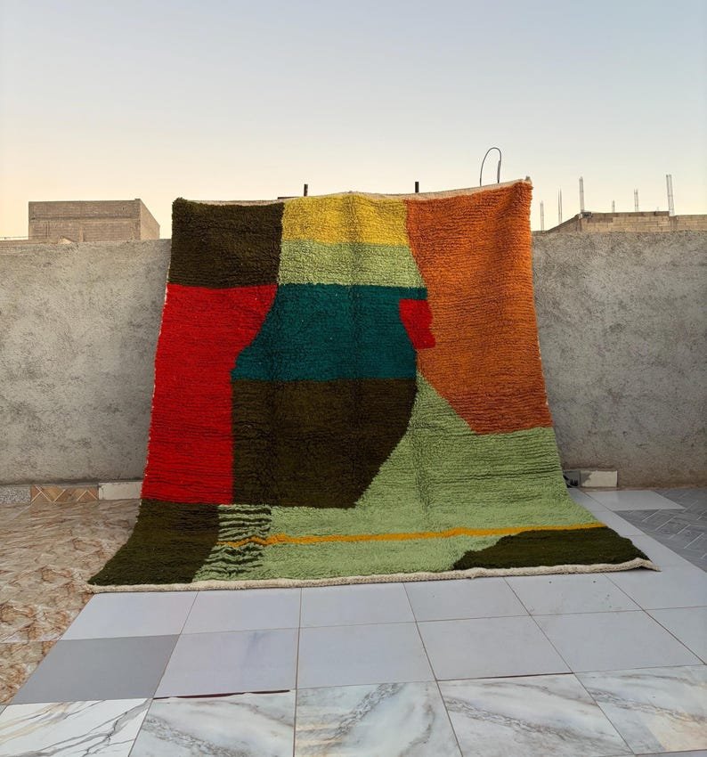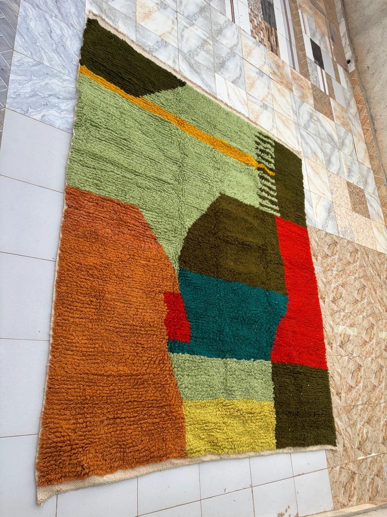 Perfect for living rooms, bedrooms, or creative studio spaces, this rug adds depth, warmth, and timeless craftsmanship to your home. Each piece is entirely handmade, so slight variations in color and pattern are part of its authentic beauty.