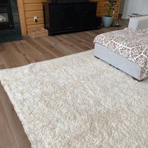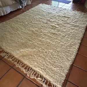 Soft, calming, and beautifully minimal, this handmade Moroccan Berber rug is designed to bring warmth and comfort to your home. Featuring a rich ivory tone and a luxuriously plush pile, this rug is inspired by classic Beni Ourain weaving and crafted for everyday living.