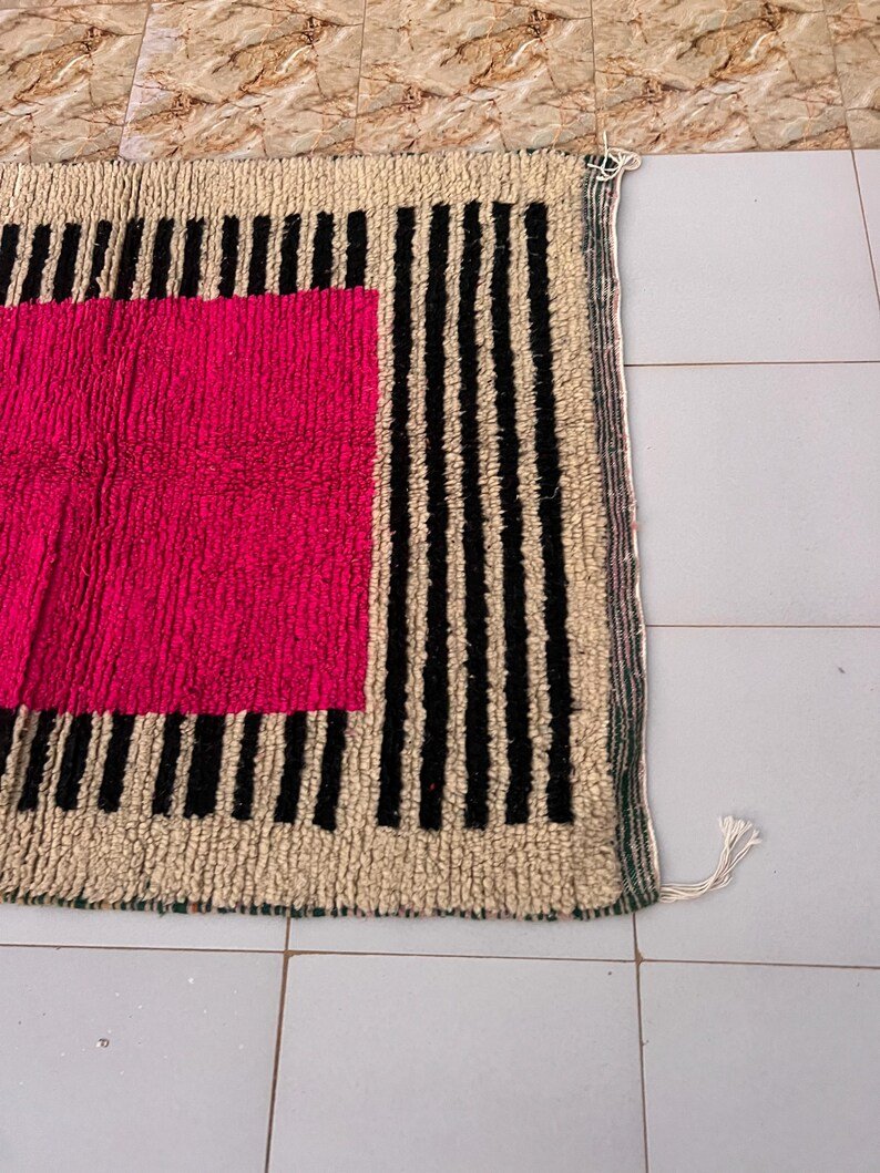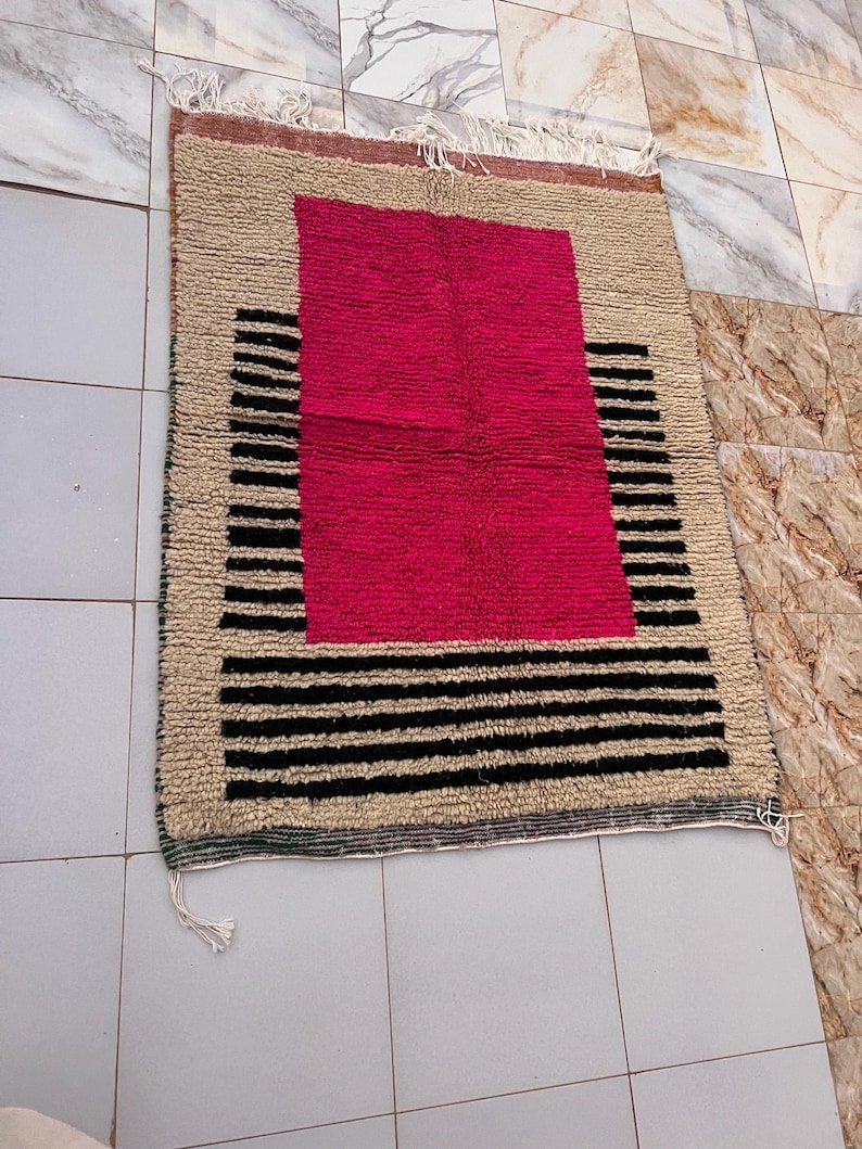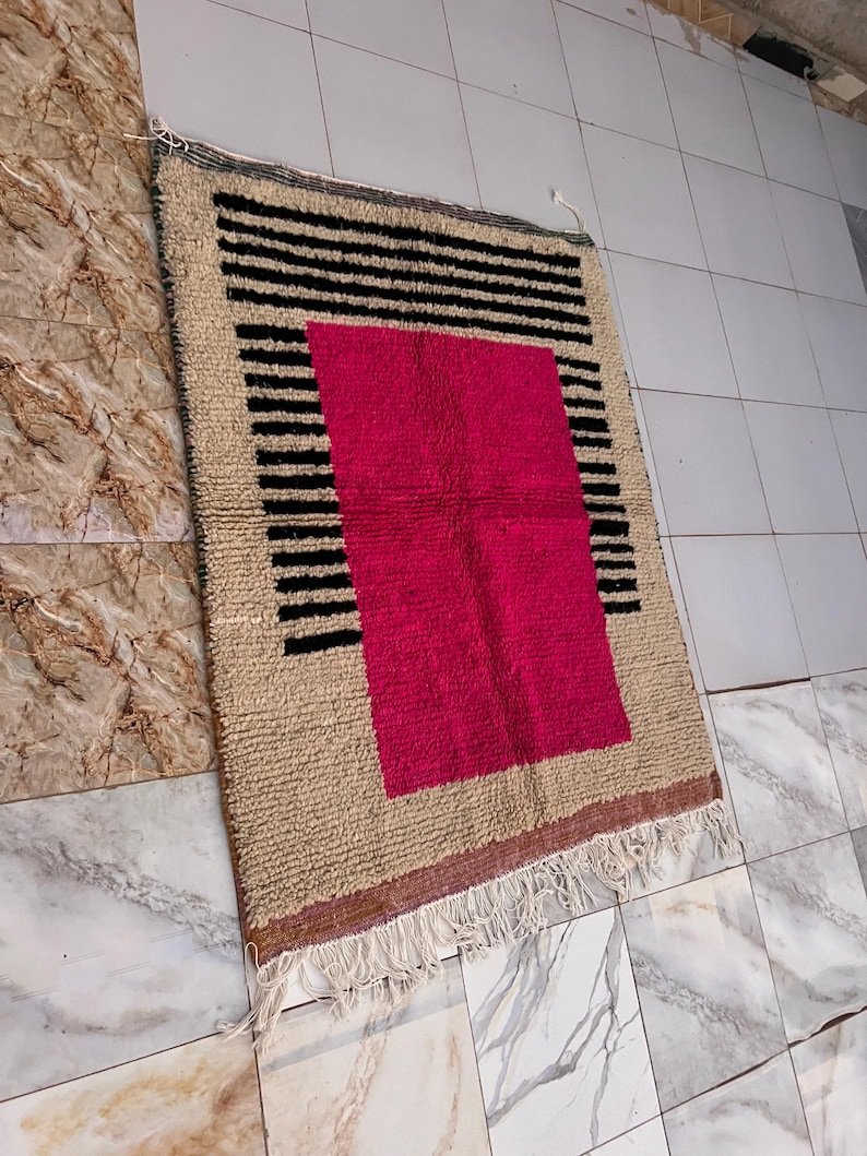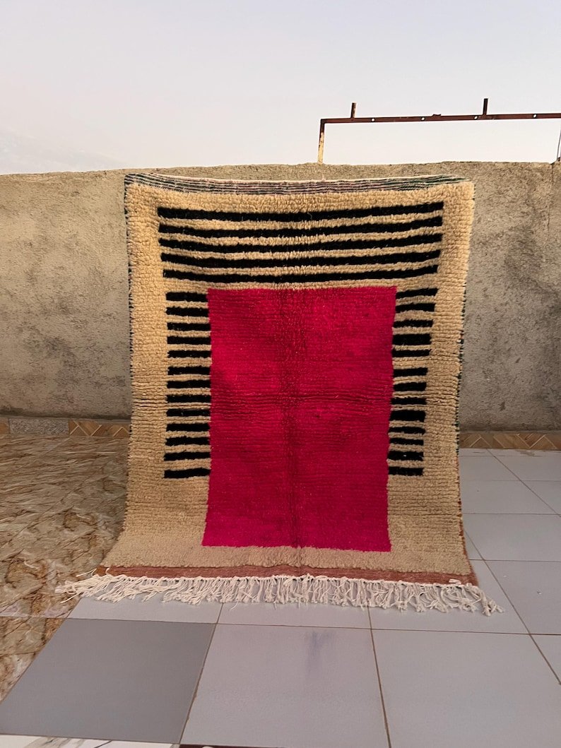Make a bold yet minimalist statement in your home with this handwoven Moroccan rug, crafted by skilled artisans using traditional Berber techniques.