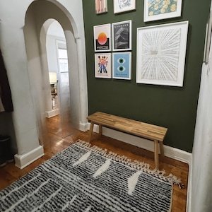Bold, graphic, and distinctly modern, this handmade Moroccan Berber rug features an abstract black-and-ivory design that brings movement and character to contemporary interiors. Inspired by traditional Berber craftsmanship and reinterpreted through a modern lens, this rug works as both a functional piece and a statement artwork.