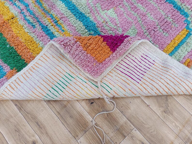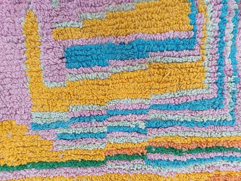 Color: While traditional Beni Ourain rugs are usually in natural white and black, custom options allow for any color, including blue.