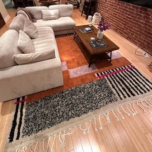 Each rug is individually crafted by skilled Moroccan artisans using traditional Berber techniques. Natural variations in texture and pattern ensure every piece is truly one of a kind. Finished with hand-knotted fringes, this rug combines authentic heritage with modern design energy.